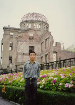 On 6th August, 1945, Hiroshima became the first city in the world to be the victim of an atomic bomb. In memory of this event, a Peace Memorial Park was established, and a memorial museum was constructed. The first thing to strike us when we entered the park was the A-bomb Dome. It was located just a few hundred yards from the hypocentre and was destroyed when Hiroshima was bombed. Instead of reconstruction, it was decided that it should be left in its state of devastation, as a reminder of the terrible nature of nuclear weapons.