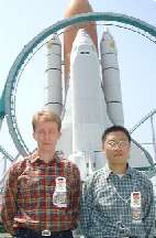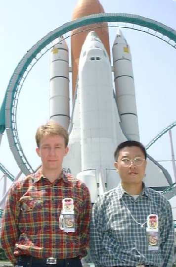 After lunch, we returned to the Star Shaker, because there was a now a different program from the one we saw earlier in the morning. Following this, we took the "Titan" roller coaster. There were fewer twists in this ride, but it compensated that by the fact it dropped from a crazy height of 60 metres, with a 60-degree gradient and 115 kph speed. Even without the twists, I still thought this was a more exciting ride, while allowing us to have a good view of the whole park at the top. Unfortunately, we were too busy screaming to see the view! Just before the ride set off, Aki called on the mobile phone, and Tei and Matt were talking to her an instant before the car pulled away.