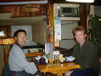 Back in our luxurious hotel, Matt tried out his Japanese CD on his newly-purchased Discman. Matt the smuggler then decided to throw away all the packaging of his Discman and digital camera, so that he could take these electronic gadgets home without paying import duty! [Matt says, "if you are a customs officer reading this, I want to remind you that the travelogues are wholly fictional. Any similarity of any character to any person, living or dead, is entirely coincidental. Um, sort of."]
