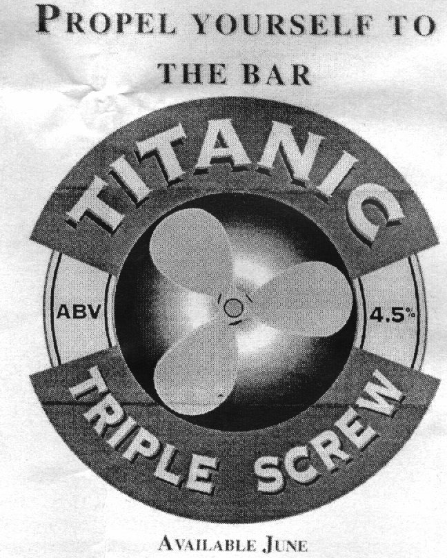 Titanic, the Potteries own brewery; has announced a summer season of new beers which should be of interest most beer lovers. In addition to the Burslem based brewery’s regular beers: Best Bitter, Premium, Stout, Captain Smith’s, Lifeboat and White Star, Titanic have a beer which will be available throughout June called "Triple Screw".