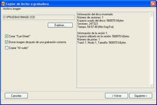 Con lo que empezamos a hacer la imagen. Al terminar de hacer la imagen empezará a quemarla automáticamente. Cuando termine oiremos la música "alegre" dandonos a entender que la grabación está bien, así como el mensaje de "copia completada". Relatado graficamente: