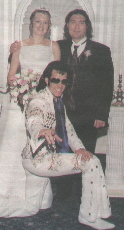 The former Cansfield High School pupil, who now lives in Hereford said, "We knew this was a way of having all our relatives and friends with us during this very special day. We wanted something different so I went down the aisle on the arm of an Elvis look-alike. It was a totally memorable day."
