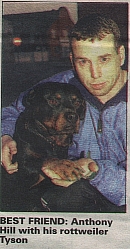 The dog terrorised children when unemployed Hill let it loose on a school playing field near his home. Later it attacked and savaged a neighbour's Yorkshire Terrier, which had to be put down because of the severity of
