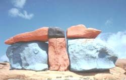 Site of the world famous painted boulders, courtesy of a inspired, yet obviously derranged Belgian.The demented ravings of the party, all of whom had come down with a case of tea lassitude.