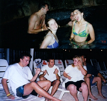The Whitworth Kristinas (Close and Weatherly) playing around in one of the 3 pools at our hotel (with my sunburnt body in the background) and Pat "The Rick" Mullane and myself enjoying celebratory Cuban cigars after Pat was elected International Trustee for a second term.