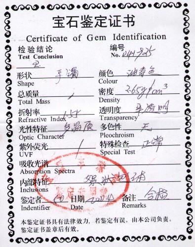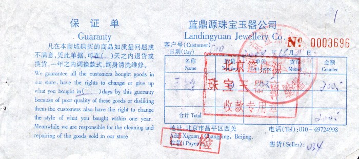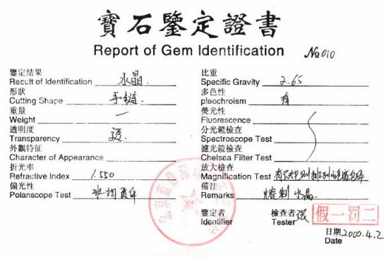 These are certificates of identification and guarantee for the crystal ("shui ching")