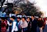 There aren't any tables and chairs at this night market. People were holding their bowls in their hands while enjoying their meal.