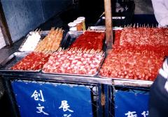 Well, we had our breakfast at the hotel restaurants while lunches and dinners were held at restaurants around Beijing, Chengde and Tianjin. So, we didn't really get to taste hawker food although we had the chance when we were walking out from Changan Avenue. There was a night market (pasar malam) being set up - all selling foodstuff. And very interesting foodstuff there is. Besides the noodles, cakes, barbeque meat, there's also fried grasshoppers and scorpions on sticks!!! I saw a man eating the scorpions and had his friend filming his culinary adventure.