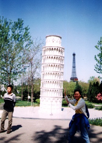 Me, fulling around with the tower of Pisa - I'm trying to keep it from falling!