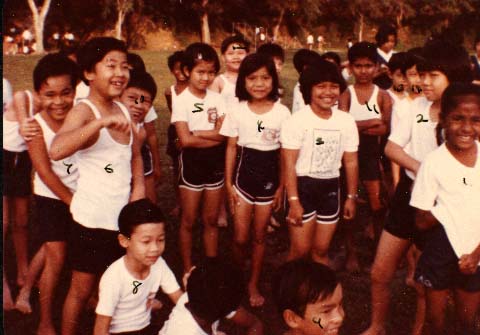Sukan Darjah Tiga - 14hb. May 1982 (Hari Khamis). 1. Bernice; 2. Foo Chi Peng; 3. Azlin; 4. Fauziah; 5. Nisah; 6. Duncan; 7. Zasali 8. Siow; 9. Noranizam; 10. Moy Yew Meng; 11. Ramesh; 12. Tong Tiam Fook; 13. Lew Wai Seng; 14. Ng. Kian Huat
