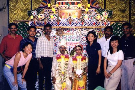 Once the ceremony was over, everybody started to line up at the buffet table. There's some kinda special rice served, curry, vege, bean curds - all vegetarian stuff because we were in the temple (no meat allowed in Indian temples). There are other guests lining up to wish the married couple. We did that after our dinner. Managed to take a group photo with the couple as well, thanks to a teacher who looked like some professional photographer with two types of huge cameras. When questioned, he mentions it's his hobby and some more the groom's brother was one of his former student.