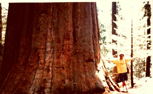 specimen of a human being under the largest Sequoia --