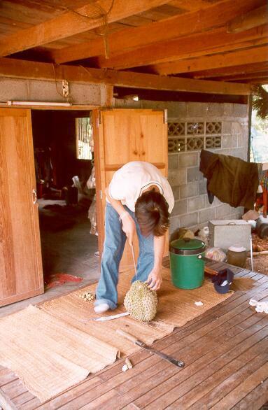 large durian husk in a 20-minute battle to get to the succulent fruit inside. In