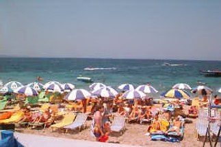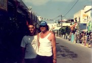 ![]() Mike and his Sweedish mate on the high street of Agia Marina outside MIke's Bar