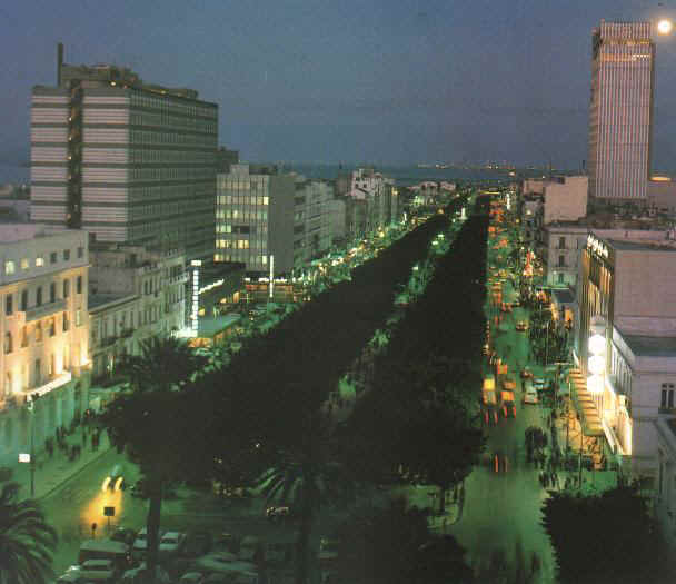 Avenue Bourgiba, which has big trees full of birds all along the pedestrian area
