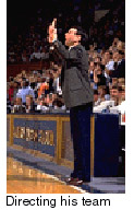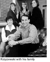 Perhaps Coach K's most impressive statistic is his graduation rate: 93%. Kryzewski recruits scholar-atheletes who have a commitment to the Duke program, rather than players who think of college hoops as merely a springboard to pro basketball. He has coached NBA stars such as Danny Ferry, Grant Hill, and Christian Laettner, and all three played four years for the Blue Devils before turning pro. He appreciates the Cameron Crazies, often calling them the best basketball fans in the country. The Crazies, for their part, can sometimes be seen bowing to Kryzewski in a show of hero-worship as he is introduced before a game. Kryzewski has a wife, Mickie, and three daughters, Lindy, Debbie, and Jaime. He recently signed a long-term contract with Duke University, ensuring his position as head coach well into the 21st century. | Coach K's Accomplishments: