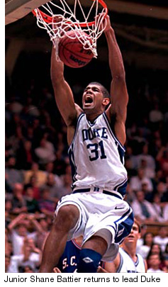 Providing veteran leadership will be seniors Chris Carrawell and Nate James and junior Shane Battier. Can the young, new-look Blue Devils match the incredible success of the 1998-1999 squad?