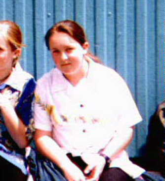 Meee....., um this was taken at school..ummm the tiny bit of a person on my left is Jo :P