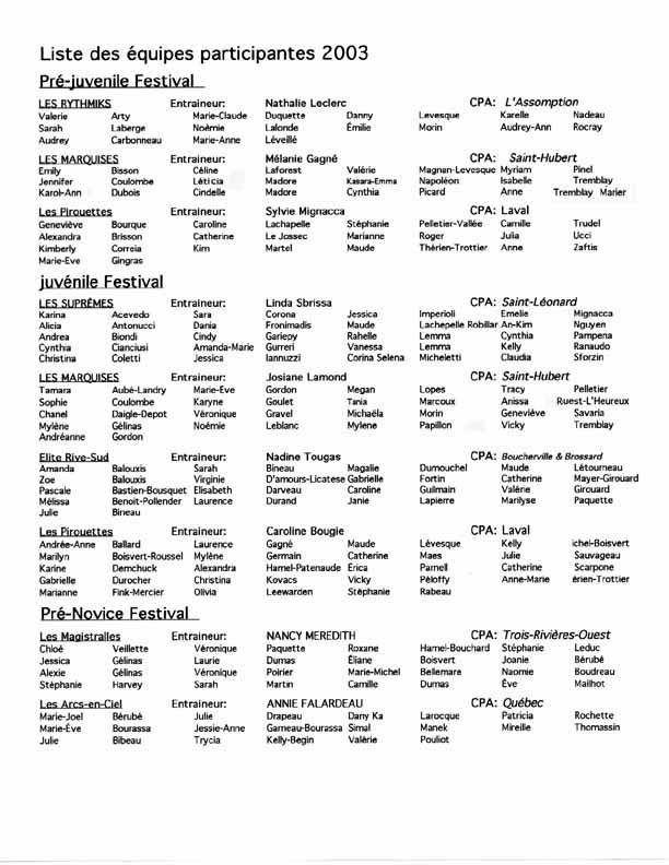 LA COMPETION DE PATINAGE SYNCHRONISE DE DECEMBRE 2003 PAGE DU PROGRAMME-page 2