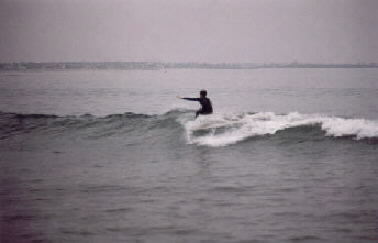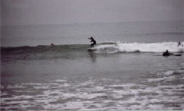 Pat "making a little something from nothing" hanging five at local surf spot surfers point Ventura, CA.