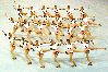 In Precision Team Skating, a group of 12 to 24 athletes skate as one unit, performing maneuvers and formations set to music. They are judged on the speed and unison with which they skate; the difficulty and accuracy of the formations; and the synchronization of the skaters. They must execute a well balanced program with a variety of circles, lines, blocks, wheels and intersections. In competition, the team skates a short program, not exceeding 2 minutes and 40 seconds, and a long program of 4-1/2 minutes duration. As in singles skating, the teams receive 2 sets of marks from thejudges--one for technical merit and one for presentation.