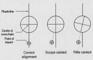 6. Put the centre of the scope's cross-hairs on the centre of the target (or line them up where a pair of horizontal and vertical lines intersect if a zeroing target is being used). Avoid canting the gun.