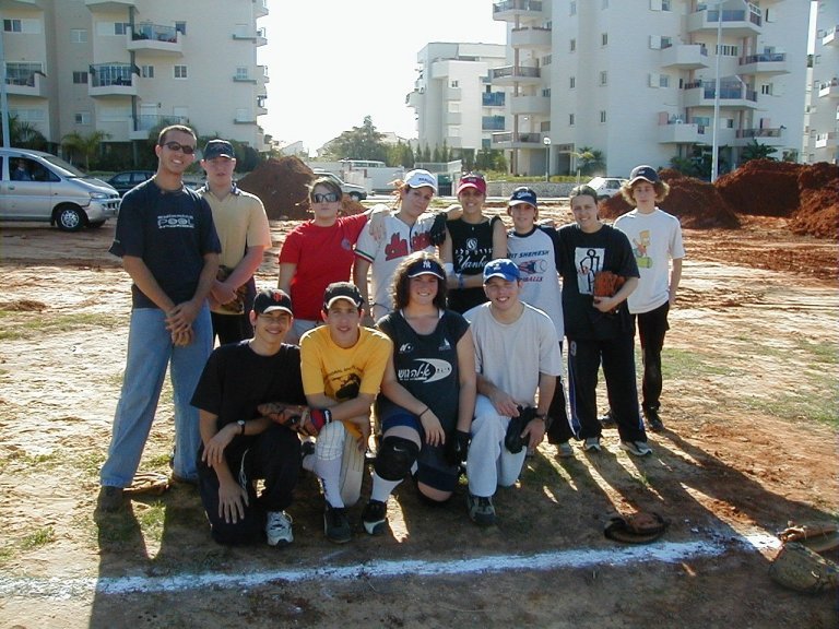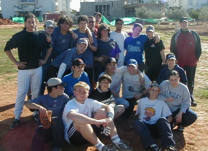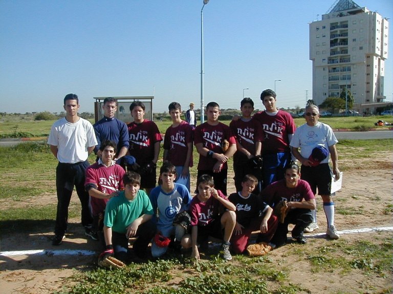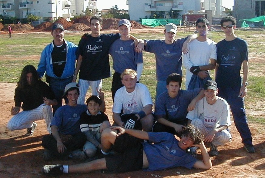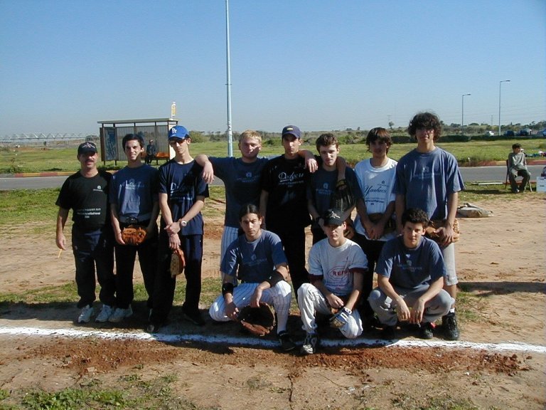 Kneeling (L to R): Alon Kaminer, Daniel Wolf, Mesika Jr. (bat-boy), Albert Sarkovitz, Daniel Hoffman, and David Shai.