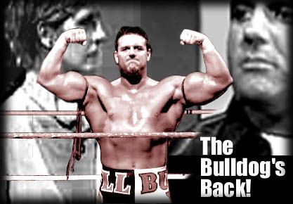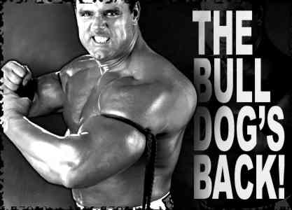 Hello readers, as you can see there's no headlines today, but the pictures says it all doesn't it? Well on to the news and rumors. The big news for today is the suprise return of "The Bulldog" Davey Boy Smith. Well its great to see this fine athlete back in the WWF. As you may all know, The Bulldog suffered an almost career ending injury more than half a year ago on Nitro. In case for those who dont know what happened, he was bodyslammed on "The Warrior's" trap door (remember how Warrior used enter and leave the ring magically through the smoke? well there was a trap door right in the center of the ring, they covered it by placing a big nitro logo in the ring. But as you can all see now the logo is gone and so is the Warrior.). Well after that The Bulldog was practically a vegetable for the first few weeks and doctors even said that he may never walk again, and after hearing all this, WCW decided to let him go, because there practically paying him for just lying there. But the Bulldog made a vow that he'll get better and make his return. This was all in the name of Owen Hart RIP. He's scheduled to have an interview taped on Thursday with Jim Ross and you can view it on WWF.com or on RAW. I can't wait to see what he has to say.