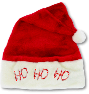 - This embroidered plush cap features red lights chasing around the words HO HO HO!