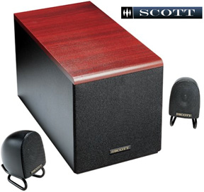 - Scott's new patented subwoofer /sattellite system speaker technology delivers explosive sound with no AC power!