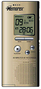 - Perfect for interviews, lectures, or as a personal reminder, the Memorex MB003 Digital Voice Recorder is a sweet little tapeless machine with the capacity to hold up to 60 Minutes of recording time.