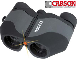 - The Carson Optics LiteUp™ binoculars are rubber armored and utilizes fully-coated lenses to provide crisp and clear viewing.