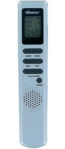 - The pocket-ready Memorex MB0035 digital voice recorder packs a lot of memory in its slender chassis.