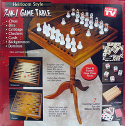 - Games included are Checkers, Backgammon, Chess, Poker Dice, Cards, Dominoes, Cribbage.