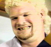 hair was bleach fried, his teeth were colored a lovely shade of plaque and he was treated