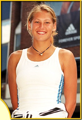 find biography and pictures of Anna Kournikova playing tennis at Wimbledon