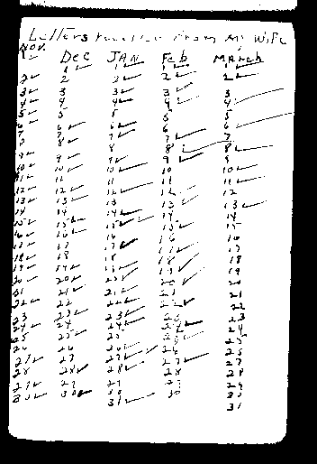 The rest of the pages of the log are blank except the last page showing dates of letters he received from his wife.