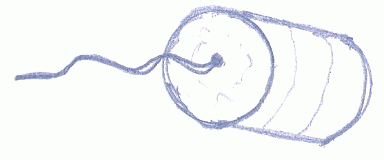 Cap told them, "Take a gallon syrup can, punch a small nail hole in the center of the bottom and thread a shoestring through the hole. Tie a knot so the string won't pull out. Dip the string in lamp oil so it is wet. Now, grip the string between your finger and thumb and slide the string through your fingers. The bottom of the bucket will vibrate to make noise. The faster you pull your hand, the higher the pitch." (Try this, it really works)