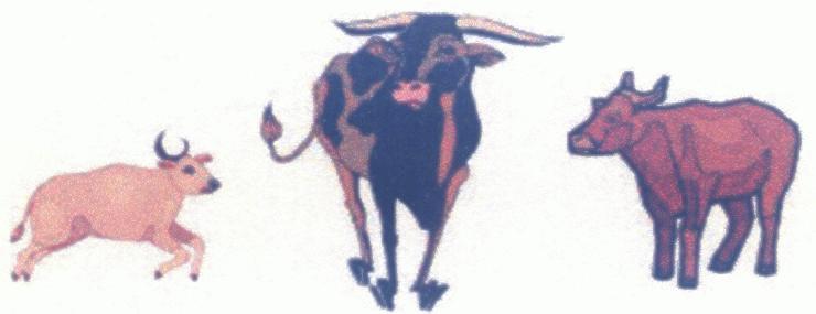 There was once a large bull, a medium sized bull and a little bull walking down a country road. They came along side a pasture with a small herd of cattle inside. There was a stream flowing through and a few small trees. The Big Bull said, "Well, fellows, this is where I leave you," and he jumped the fence into the pasture.