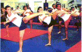 KICKBOXING: Our Kardio Kickbox program will give you the results you've always wanted, while also learning to defend yourself in any situation. Kardio Kickboxing takes the music, excitement and energy of aerobics, but adds important self-defense techniques like jabbing, hooking, kicking and blocking. All this while burning up to 800 calories per hour! (According to Muscle and Fitness Magazine.) |