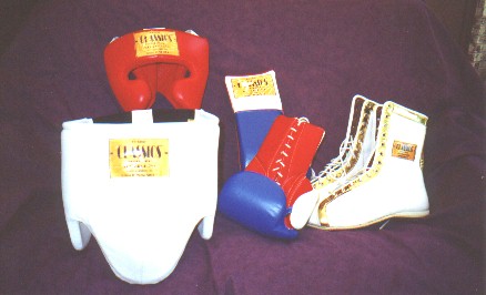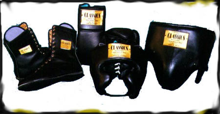 This BOXING CLASSICS package includes one pair of Training Gloves, one Headgear, one Cup, and one pair of Boxing Shoes. This offer is valid for all sizes. SPECIAL OFFER PRICE OF $229. You must mention you saw the internet special when calling to get this special price. By far the BEST DEAL in All Leather equipment on the market. In stock items only.