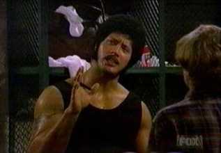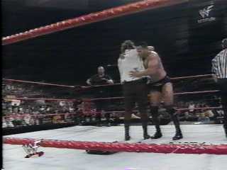 Rock Laying the Smack Down, on the poor piece of Monkey Crap, Mankind.