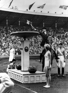 | The Olympic flame is lit for the 1956 equestrian events, which were held in Stockholm because of Australian quarantine restrictions |