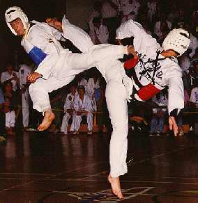 Taekwondo is a Korean Martial Art, and it is also the only martial art that is a recognized Olympic Sport. It is a full contact sport, but protection must be worn by all contestants at all times. Head gear, chest protectors, arm, shin and groin protection must be worn when competing. The length of the rounds vary from competition to competition, but average around 3 rounds of 2 minutes. | |||||||||||||||||