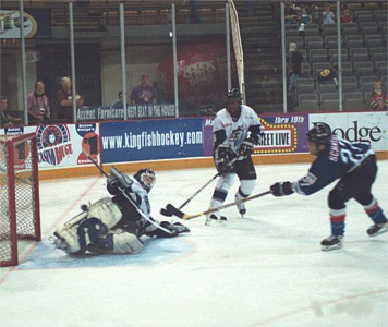 | Kingfish - Mike Lenarduzzi (31 shots, 26 saves; record: 0-1-1). | ||||||