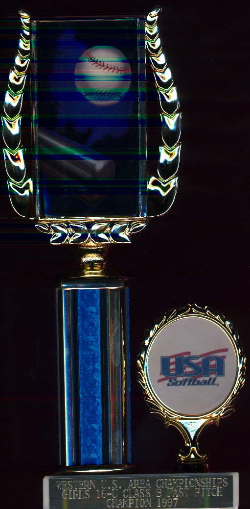 7/28/97 - We won another tournament! This time it's the Pleasanton Clubsport Classic. One of our very best this year. We won all of our six games and four were shutouts, one (championship game) was a perfect game. Our eyes are on Spokane, Washington. We'll work hard for that much-awaited tourney.