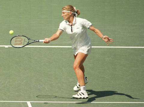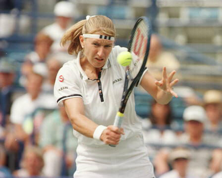 Steffi faces Judith Weisner in the quarterfinals. In their 9 previous meetings, Steffi has never lost to the Austrian. Steffi's game is still not in top gear, and Wiesner makes the champion work very hard throughout the first set. When the set reaches 5-5, Steffi steps up a gear, and takes the set 7-5. In the 2nd set, Steffi races to a 4-0 lead, only to see Wiesner surge back. But, for Wiesner, it is a case of too little too late, as well as incredible shots from Steffi. The defending champion marches into the semifinals 7-5, 6-3.