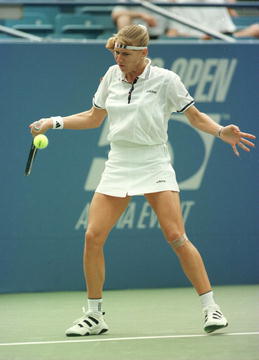 In the 3rd round, Steffi faces old rival, Belarussian, Natasha Zvereva. The 'Maiden from Minsk' gives Steffi a real go in the first set, and bad line calls don't work in Steffi's favour either. Steffi does manage to take the first set, though, and, eventually, the match, 6-4, 6-2.