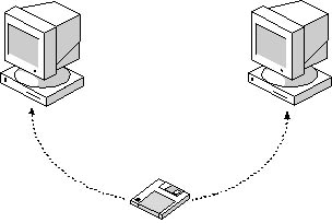 Copying files onto floppy disks and giving them to others to copy onto their computers was sometimes referred to as the "sneakernet." This early form of computer networking is one that many of us have used and perhaps still use today. See Figure 1.2; it might bring back some fond memories.