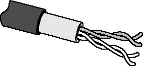 A nonconducting outer shield—usually made of rubber, Teflon, or plastic—surrounds the entire cable.